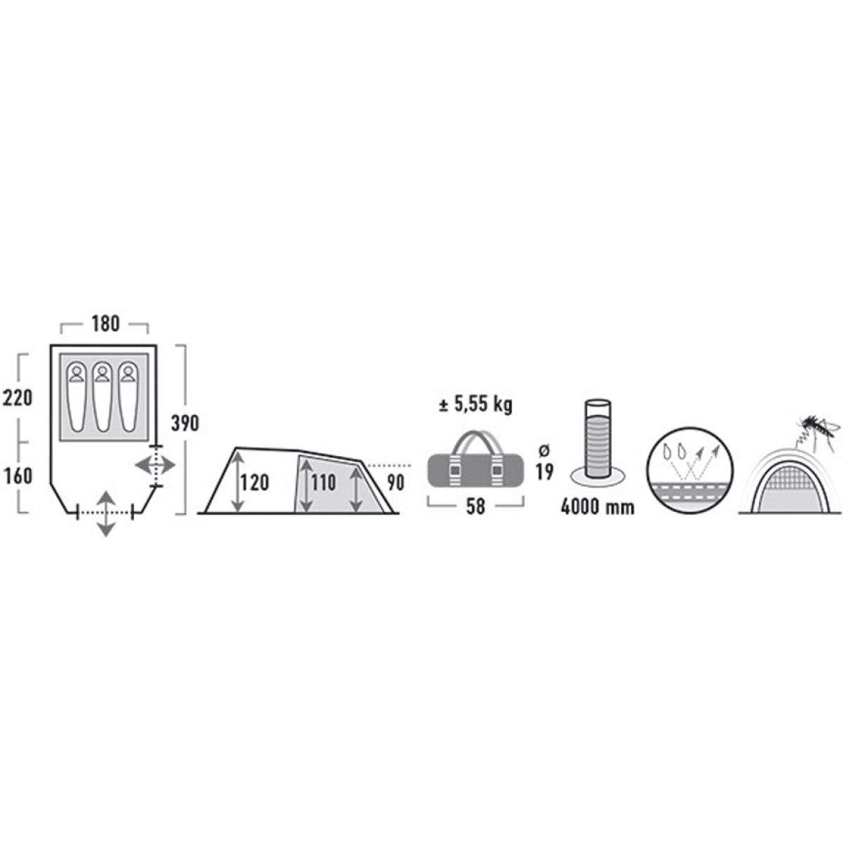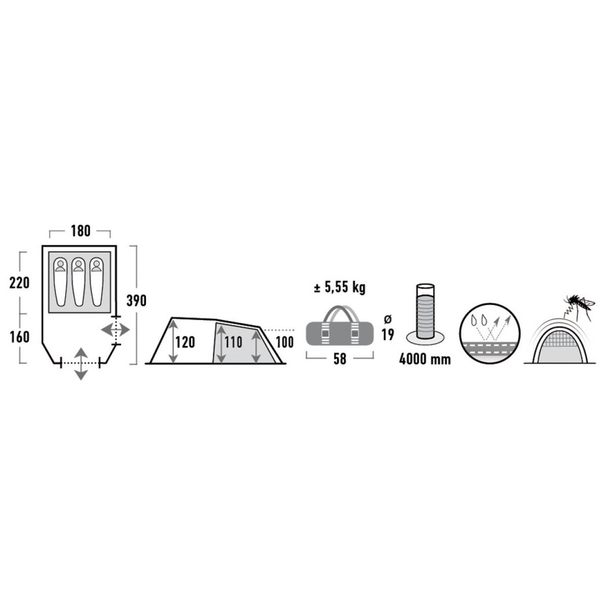 - Laminated seams and a 4000mm waterproof rating provide excellent protection against rain. Ventilation holes ensure constant air circulation. Specifications: Sleeps 3, Waterproof: 4000mm