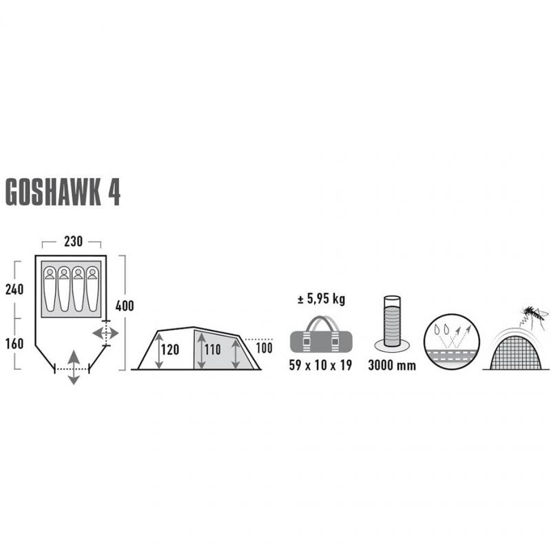 - The 4-person Goshawk 4 tent in olive green is a perfect choice for camping with family or friends.