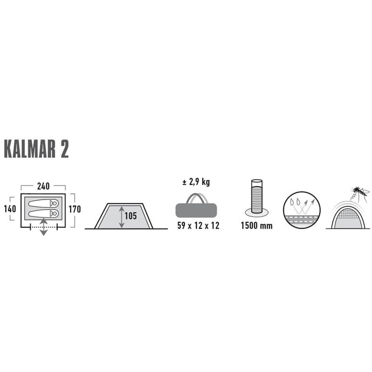 Number of people: 2 Waterproof: 1500 mm water column Flysheet: 100% polyester, PU, taped seams Bedroom: 100% breathable polyester, entrance – mesh Floor: 100% Polyethylene (PE) Frame: 7.9 mm glass fiber Dimensions: 240x170/140 cm Height: 105 cm Dimensions after folding: 59x12x12 cm Weight: 2.9 kg