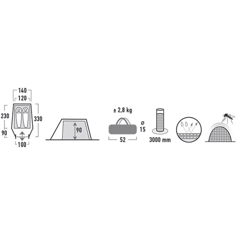 - The spacious High Peak Kite 3 tent is designed for two people.