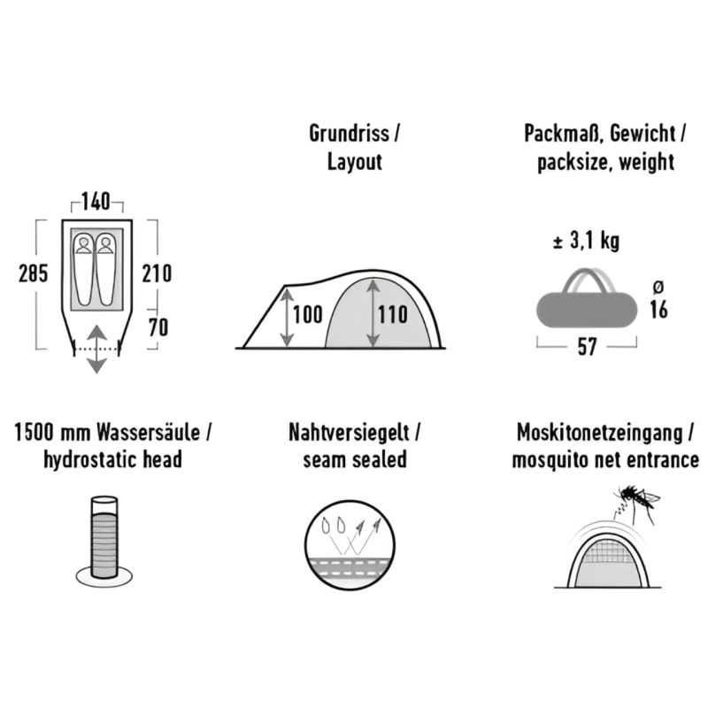 - 2-person dome tent with a vestibule, High Peak, perfect for a short camping trip, festival, or short hike.