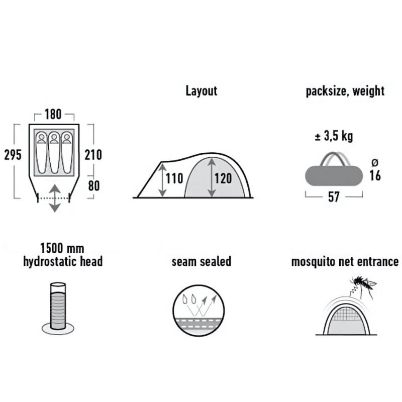 Dimensions: 295x180 cm (including 80 cm vestibule), height 110/120 cm