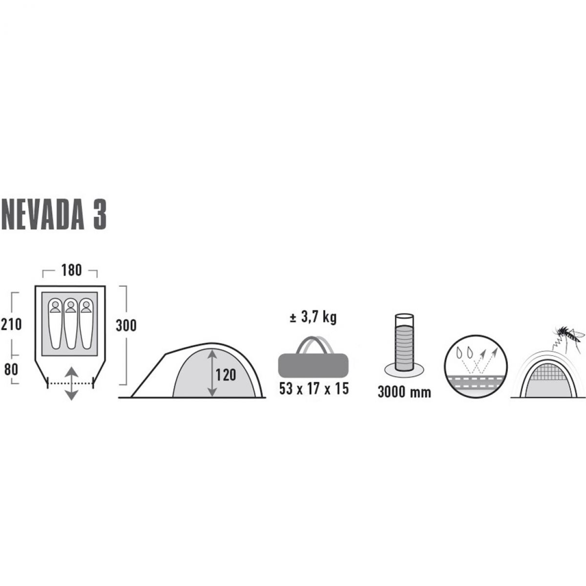 The Nevada 3 tent accommodates 3 people. Ventilation holes and mosquito netting protect against insects. Taped seams protect against rain and wind. The Nevada tent is an excellent option for active people who enjoy contact with nature. Double-skinned.