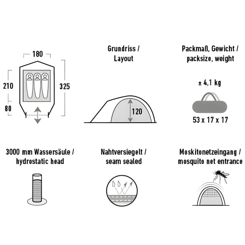 - Nevada 3 tent accommodates 3 people.