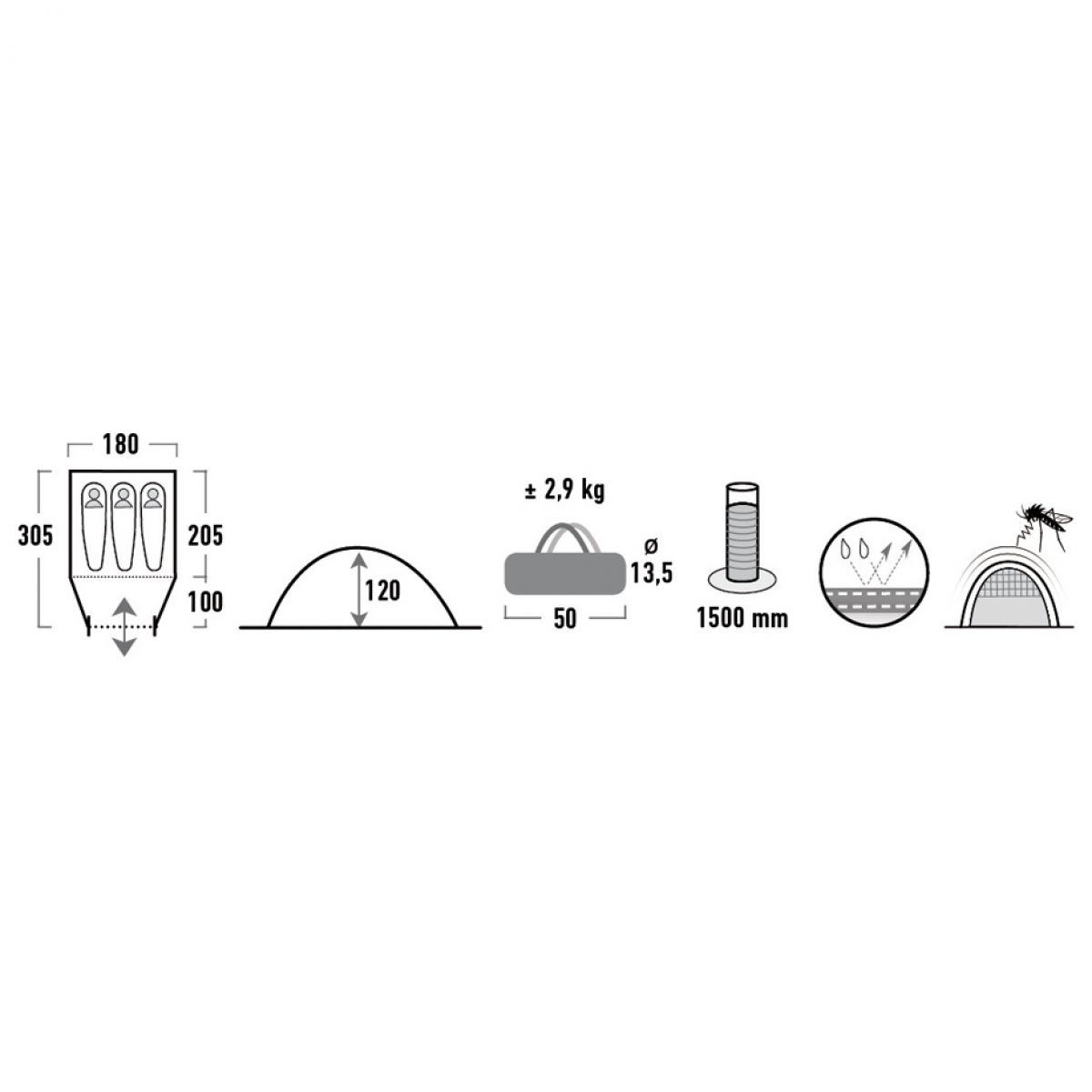 - Flysheet - 100% polyester coated with PU, mesh entrance