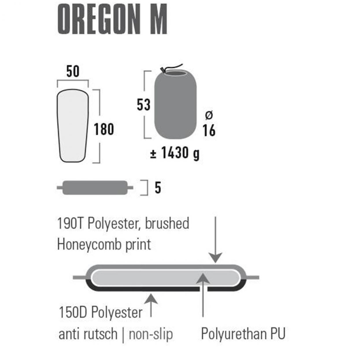 This self-inflating thermal mat with high-density foam provides insulation and comfort. The "Wave Cut" surface conforms perfectly to the body. The self-inflating mat is made of high-quality, non-slip brushed polyester fabric. The underside is made of durable, non-slip polyester. The Oregon self-inflating mat is equipped with a non-return valve. The mat comes with two compression straps and a stuff sack.