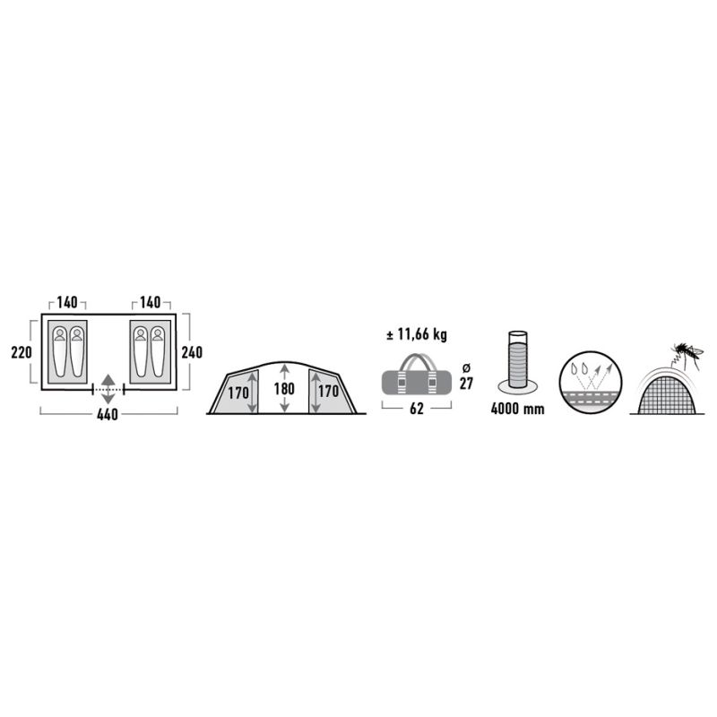 High Peak Tauris 4 Tent Dark Gray 11560
