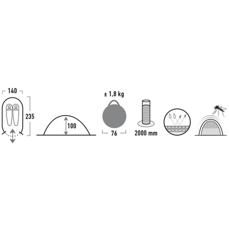 - Waterproof - 2000mm water column. Flysheet - fire retardant.