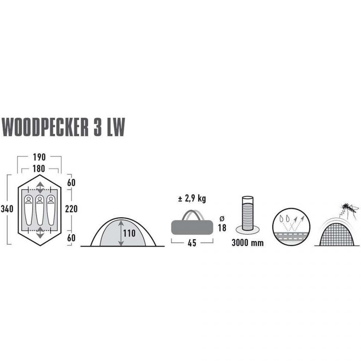 - The refined construction of the High Peak Woodpecker tent with laminated seams and a 3000mm water column provides good protection against rain.