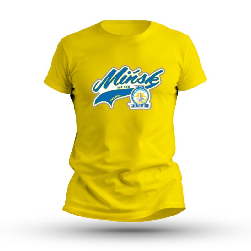 HKS Jets City Edition Yellow Jersey. Urban style in team colors! The HKS Jets City Edition yellow jersey combines sporty spirit with urban energy. Made from high-quality material, it provides all-day comfort and breathability. A dynamic "Minsk" print and the HKS Jets crest highlight club pride, making it the perfect choice for fans both in the stands and on the go. Key features: Official club product: Decorated with the HKS Jets crest and "Minsk Est. 2021" inscription, it is an authentic part of the club collection. Modern design: Vibrant yellow colors and a striking print give the jersey a dynamic, urban character. Universal use: Perfect for matches, training, and everyday styling. High-quality material: Soft, breathable fabric (85% cotton, 15% viscose) guarantees comfort during everyday wear and activity. Weight: 190 g/m² – lightweight, yet robust construction ensures durability. The HKS Jets City Edition Yellow jersey combines club pride, comfort and urban style, making it the perfect choice for every HKS Jets fan!