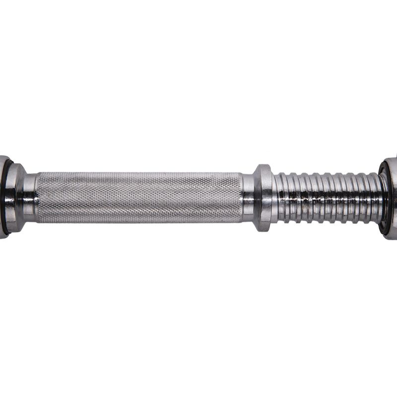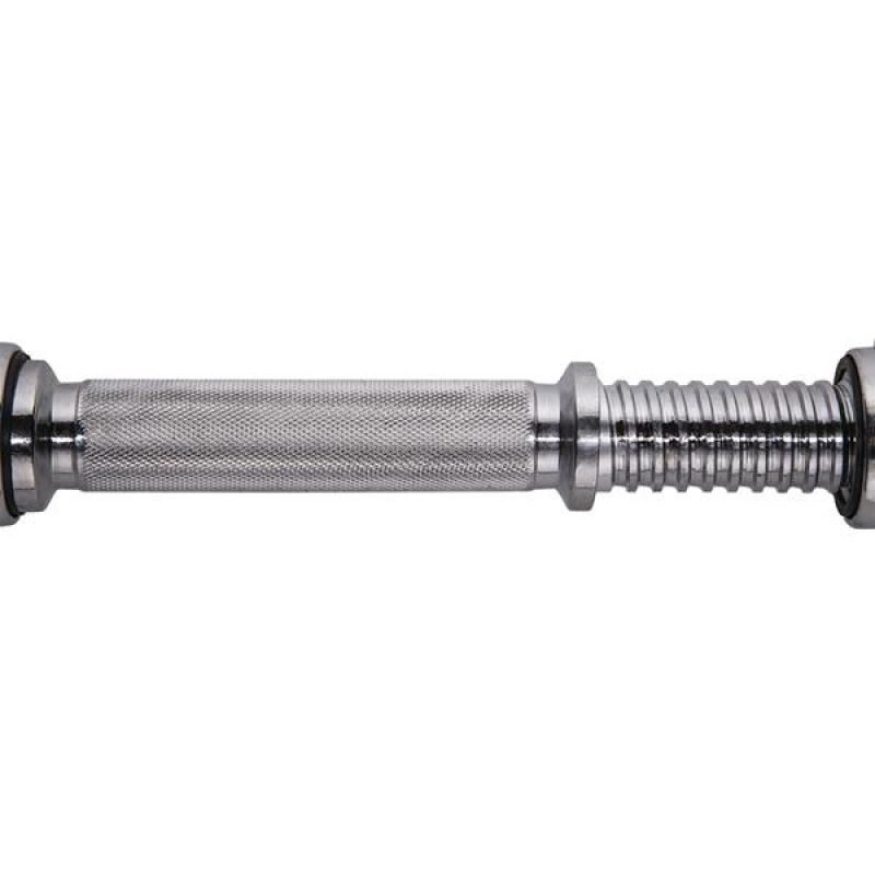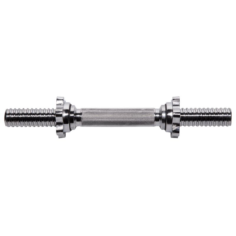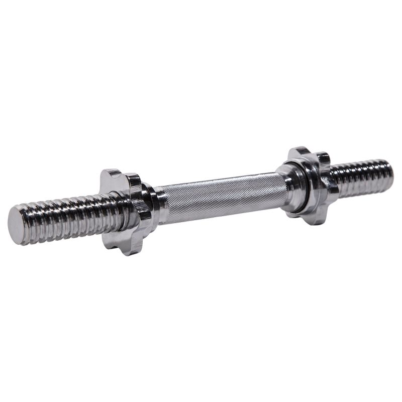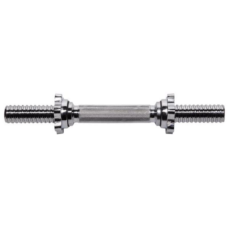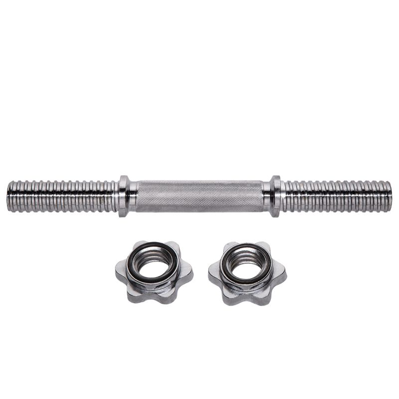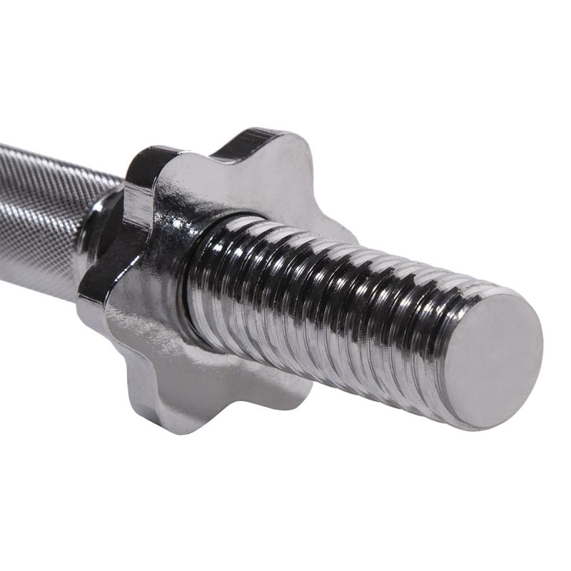 The set includes two screw clamps. These clamps ensure a stable weight position on the bar during exercise. The nuts have rubber seals inside to prevent the weight from loosening. The threaded portion of the bar allows for quick and safe weight placement. The bar is made of solid steel bar that has been hardened. The bar's 30-millimeter diameter ensures high durability and comfortable exercise. The chrome-plating process ensures the bar's appearance is maintained for a very long time and provides the best protection against rust.