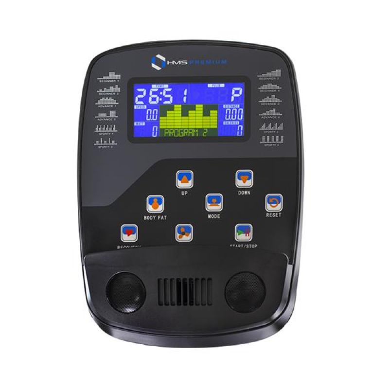 Users also have access to a large computer, which allows them to independently set all parameters, such as training time, goal, and load. The device has 12 built-in training programs and a manual mode. Other features of the H1742 HMS PREMIUM elliptical trainer include Body Fat measurements and Recovery performance testing.