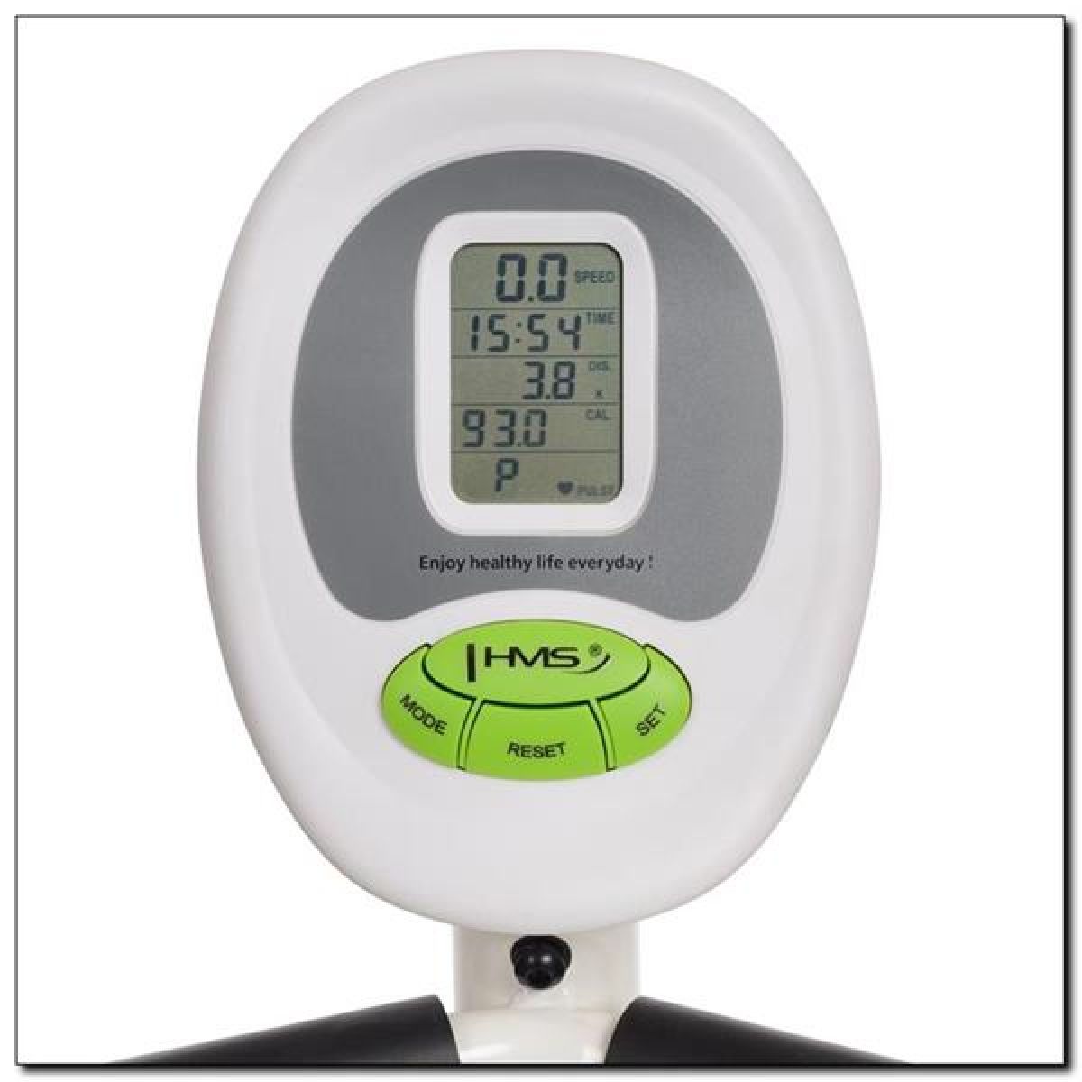 The R9259 HMS recumbent bike is a modern design designed for cardio training. This product combines high quality, functionality, and ease of use. Thanks to the magnetic resistance system, exercises are quiet and therefore won't disturb others around you. A knob allows you to adjust the resistance level to your needs. The 8-level resistance adjustment makes this bike an excellent choice for both beginners and advanced users. Convenience and comfort during exercise are ensured by its recumbent design. The functional and modern display counts and presents all key workout parameters. Comfortable, non-slip pedals are another advantage of HMS PLUS equipment.