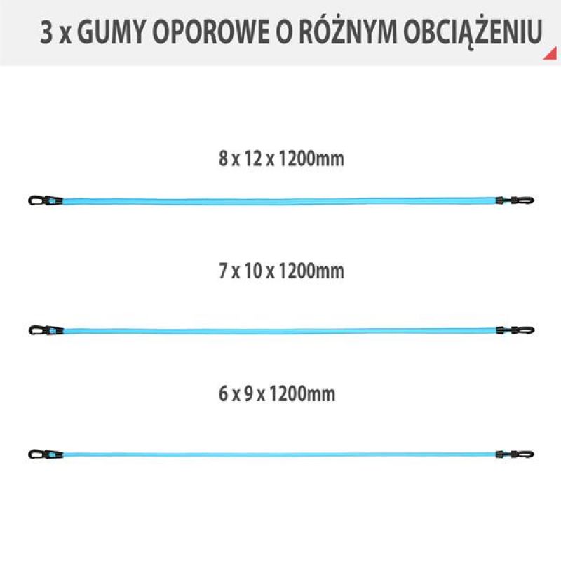 3 x resistance bands with different loads: