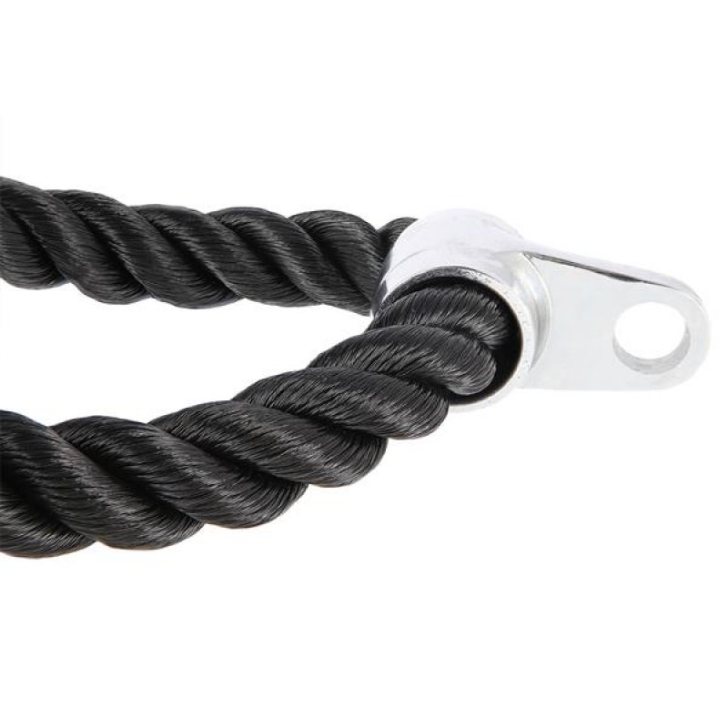- The rope has rubber sleeves on both ends for added safety during training. They allow for a firm and secure grip. This is a fundamental element used in many bodybuilding exercises, with particular emphasis on the arm and abdominal muscles.