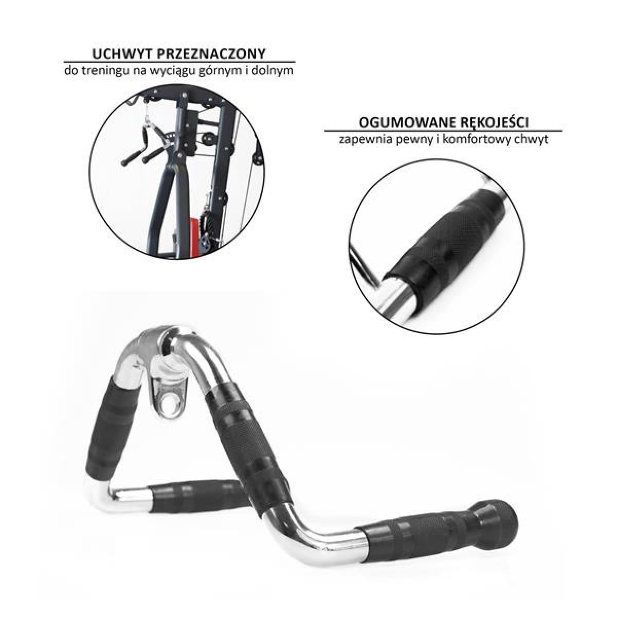 The UW17 HMS is a handle designed for both high and low pulley training. It's primarily used to work the lats, and with proper positioning, it can also be used to work the abdominal muscles. The inner handles allow for biceps and triceps training.