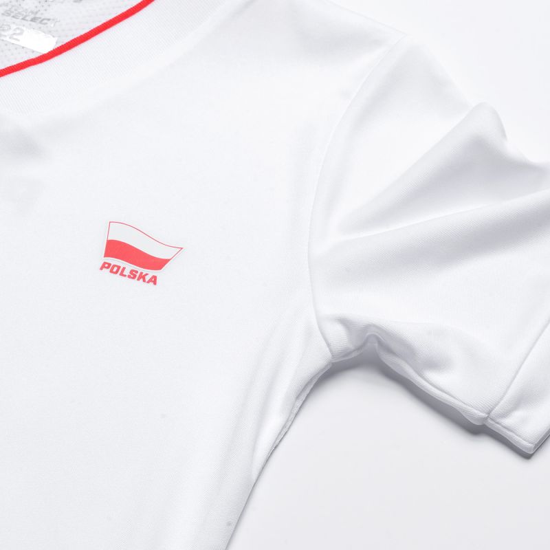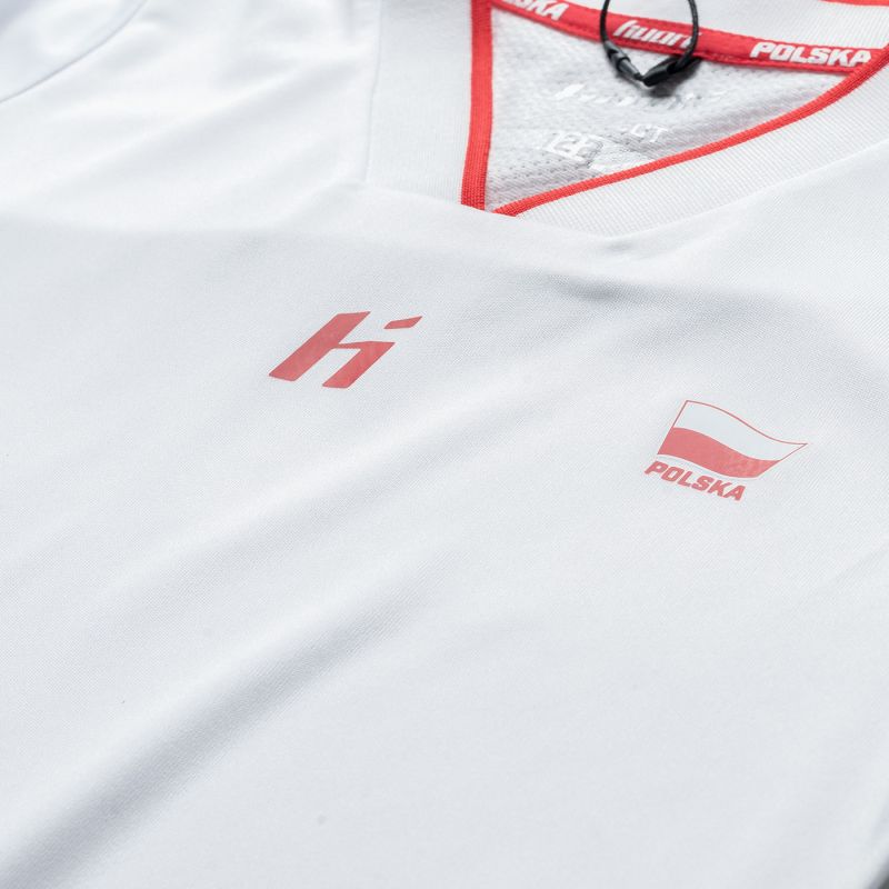 The ALUMNI POLAND KIDS T-shirt by Huari features a simple cut with a V-neckline. It's made of a synthetic material that effectively wicks sweat away from the skin. The back of the shirt features a structure made of thousands of small holes that help wick moisture away. The design is completed with the word "Polska" and the Polish flag.
