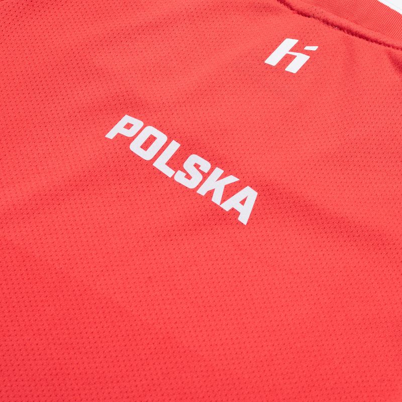 The ALUMNI POLAND KIDS T-shirt by Huari features a simple cut with a V-neckline. It's made of a synthetic material that effectively wicks sweat away from the skin. The back of the shirt features a structure made of thousands of small holes that help wick moisture away. The design is completed with the word "Polska" and the Polish flag.