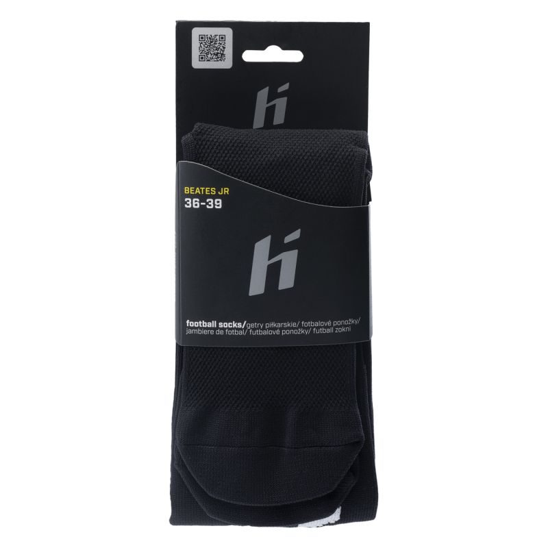 The BEATES JUNIOR soccer socks by Huari are made of stretch-resistant synthetic materials. This model features mesh that aids in moisture wicking. The addition of elastane ensures the sock fits snugly against the leg, minimizing discomfort during play.