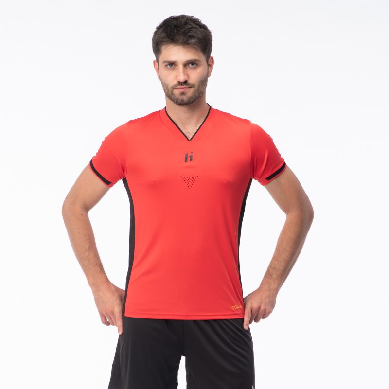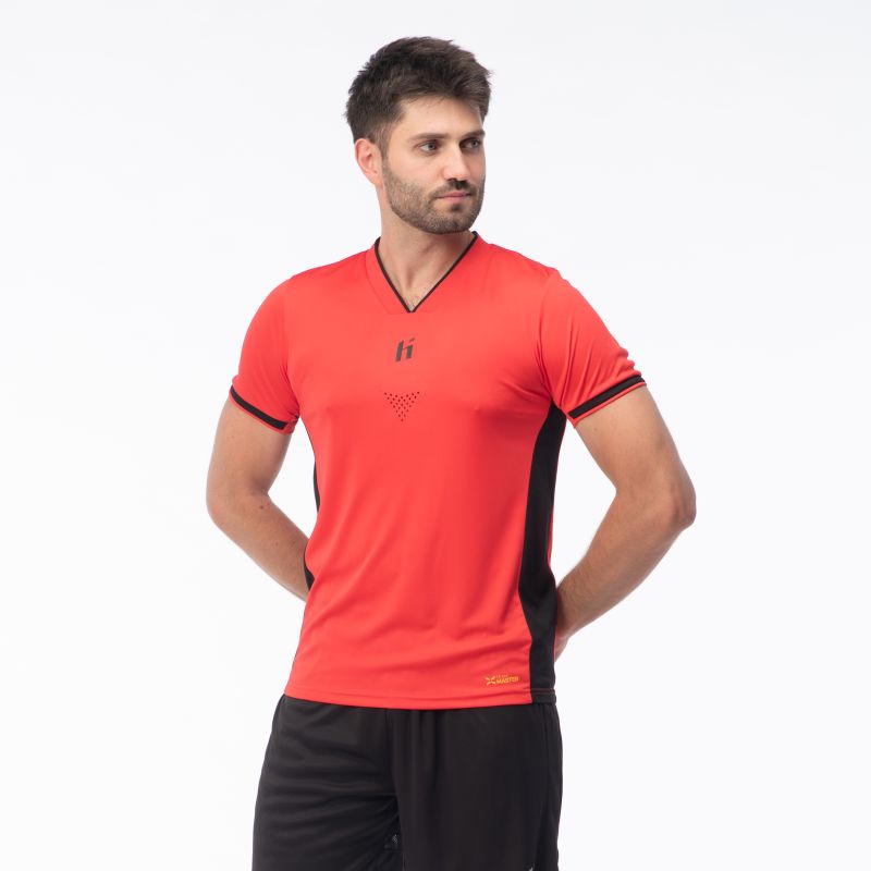 The XENO SENIOR men's T-shirt by Huari features a simple cut that allows for unrestricted movement during various activities. Laser-cut ventilation holes promote sweat wicking without irritating the skin. The XENO model is made of synthetic materials, which dry faster and wick moisture away from the skin more quickly. Furthermore, this model features a mesh panel under the arms with thousands of small holes that accelerate sweat wicking. The vibrant colors will make you stand out on the pitch.