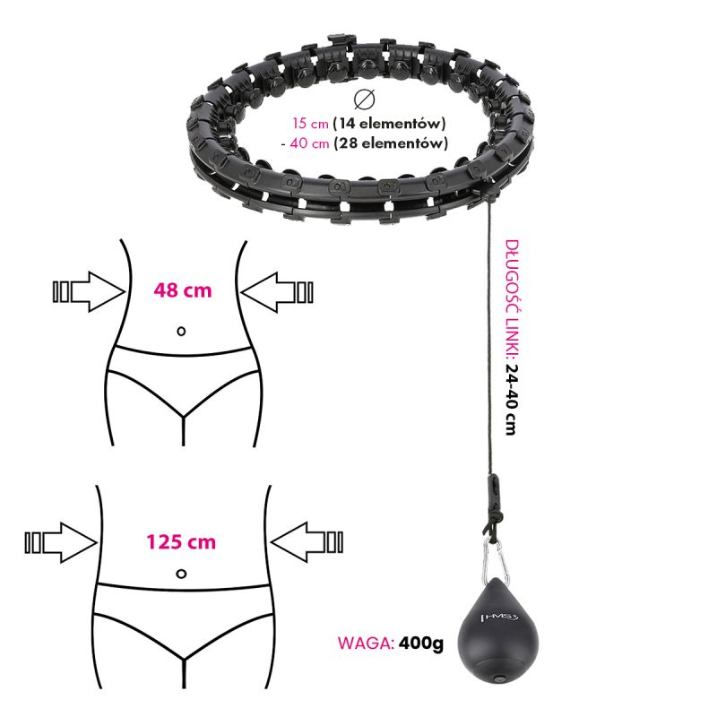4. HULA HOP SET HHW12 BLACK WITH PROJECTIONS AND HMS WEIGHT + BELT BR163 BLACK PLUS SIZE