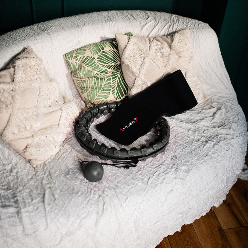 19. HULA HOP SET HHW12 BLACK WITH PROJECTIONS AND HMS WEIGHT + BELT BR163 BLACK PLUS SIZE