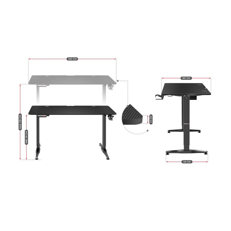 • Tabletop dimensions (WxD): 1400 x 600 mm