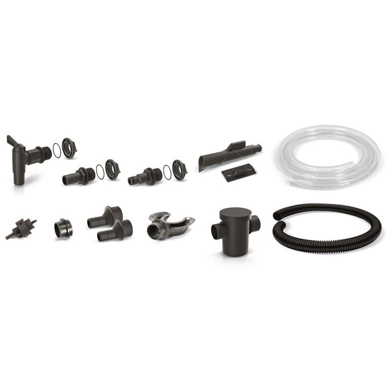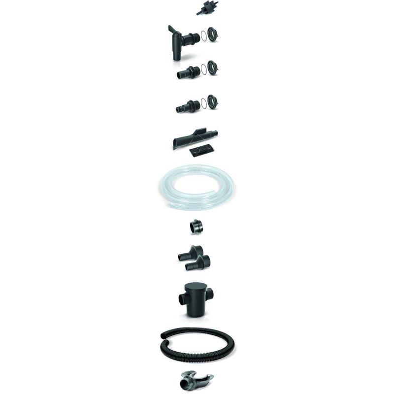 - The set consists of: hole saw, tap, universal connectors x 2, garden hose, spout, hanger, reducer, hose, external filter, catcher