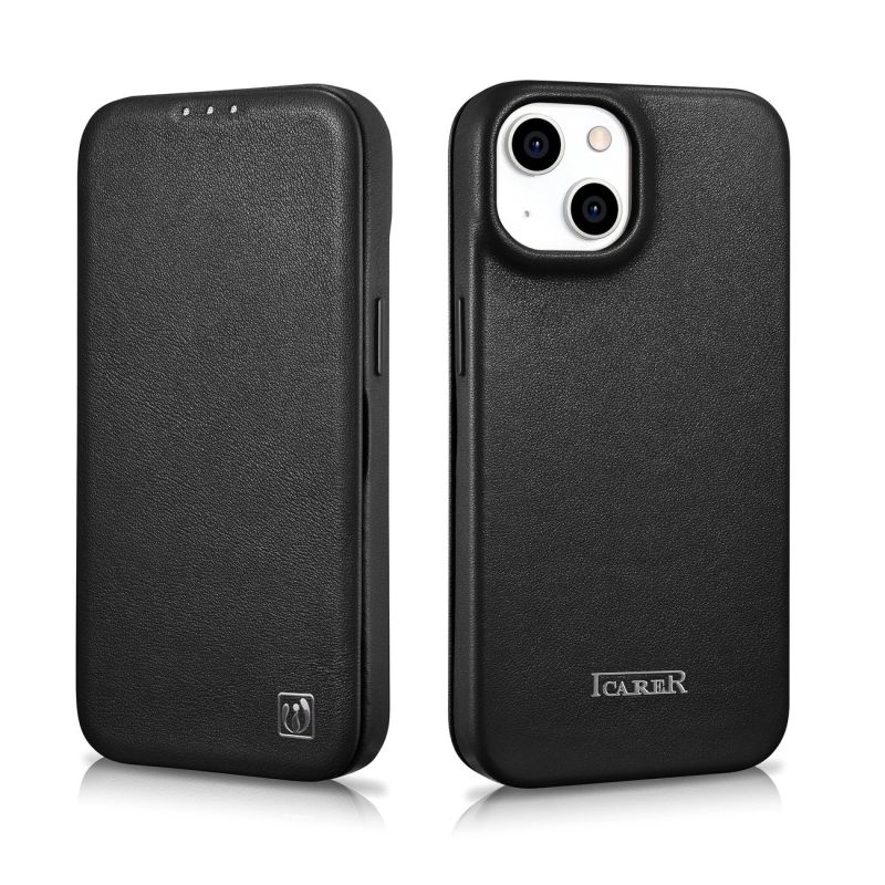 iCarer CE Premium Leather Folio Case iPhone 14 Plus Magnetic Flip Leather Folio Case MagSafe black (WMI14220715-BK)