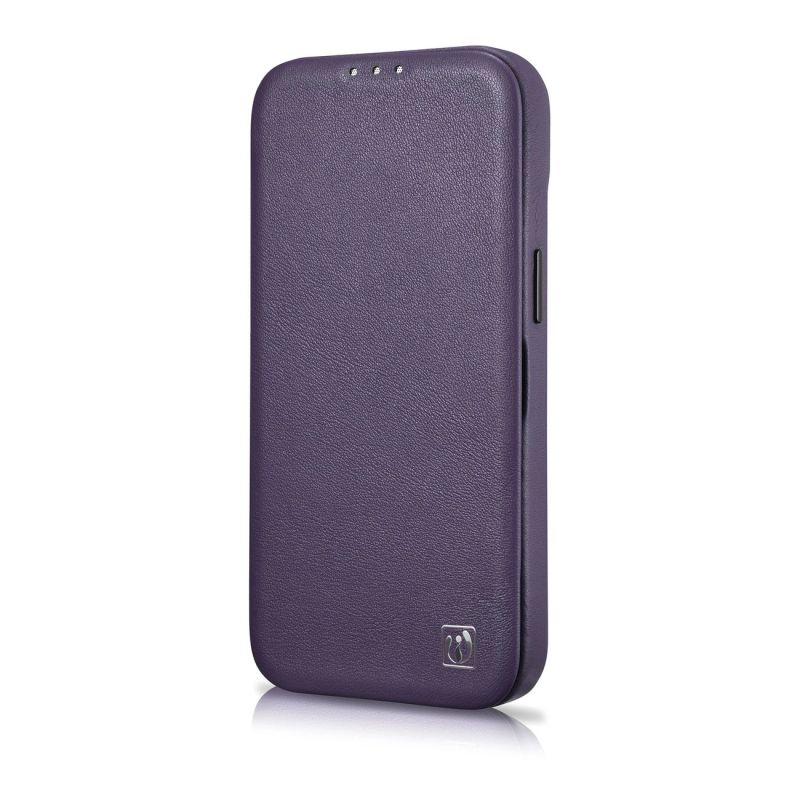 iCarer CE Premium Leather Folio Case iPhone 14 Plus Magnetic Flip Leather Folio Case MagSafe Dark Purple (WMI14220715-DP)