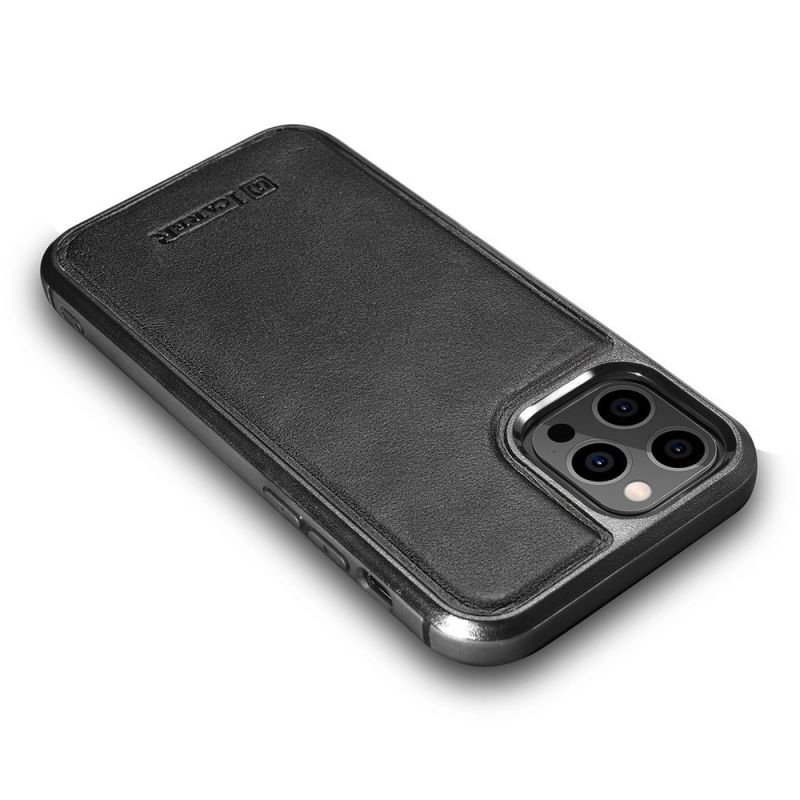 iCarer Leather Oil Wax case covered with natural leather for iPhone 12 Pro Max black (ALI1206-BK)