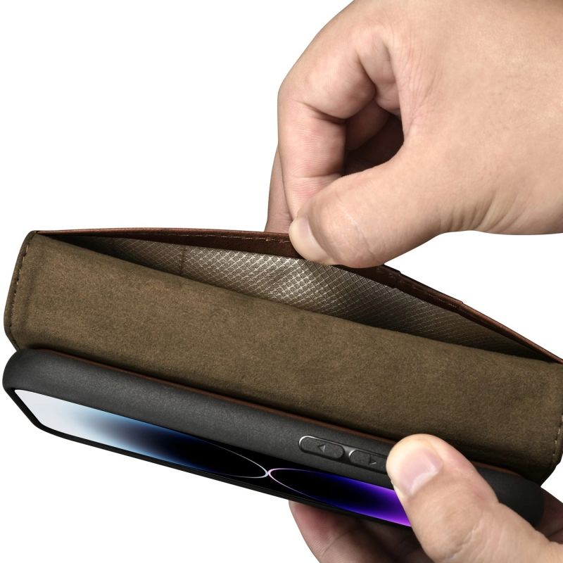 iCarer Oil Wax Wallet Case 2in1 Cover iPhone 14 Pro Anti-RFID Leather Flip Case Brown (WMI14220722-BN)