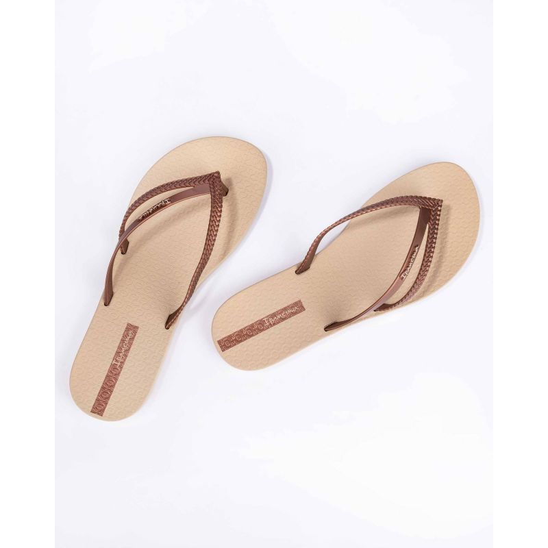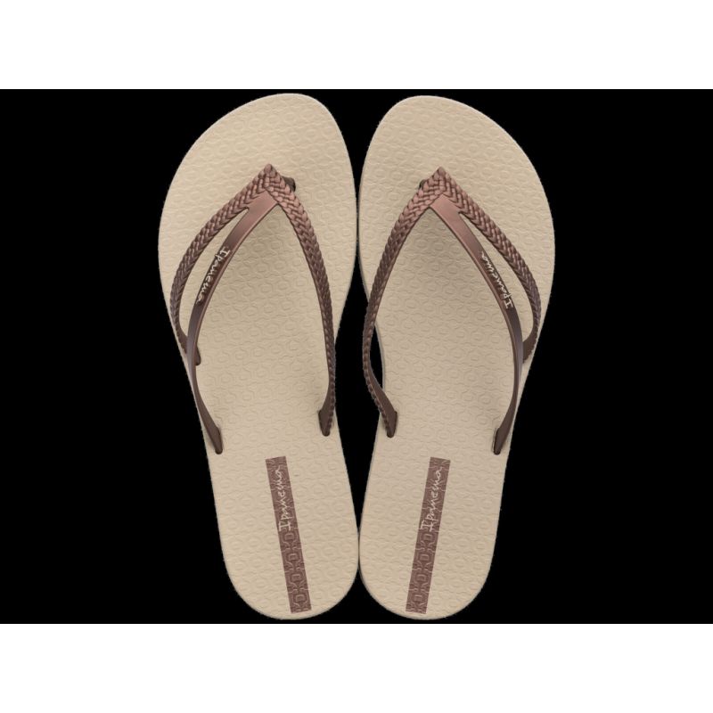 Stylish women's flip-flops, perfect for summer. They feature a unique double-strap design with subtle weaving. High-quality materials ensure exceptional comfort.