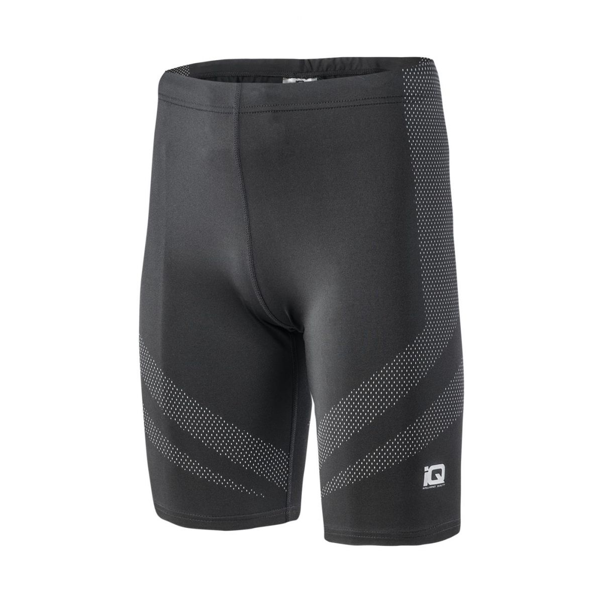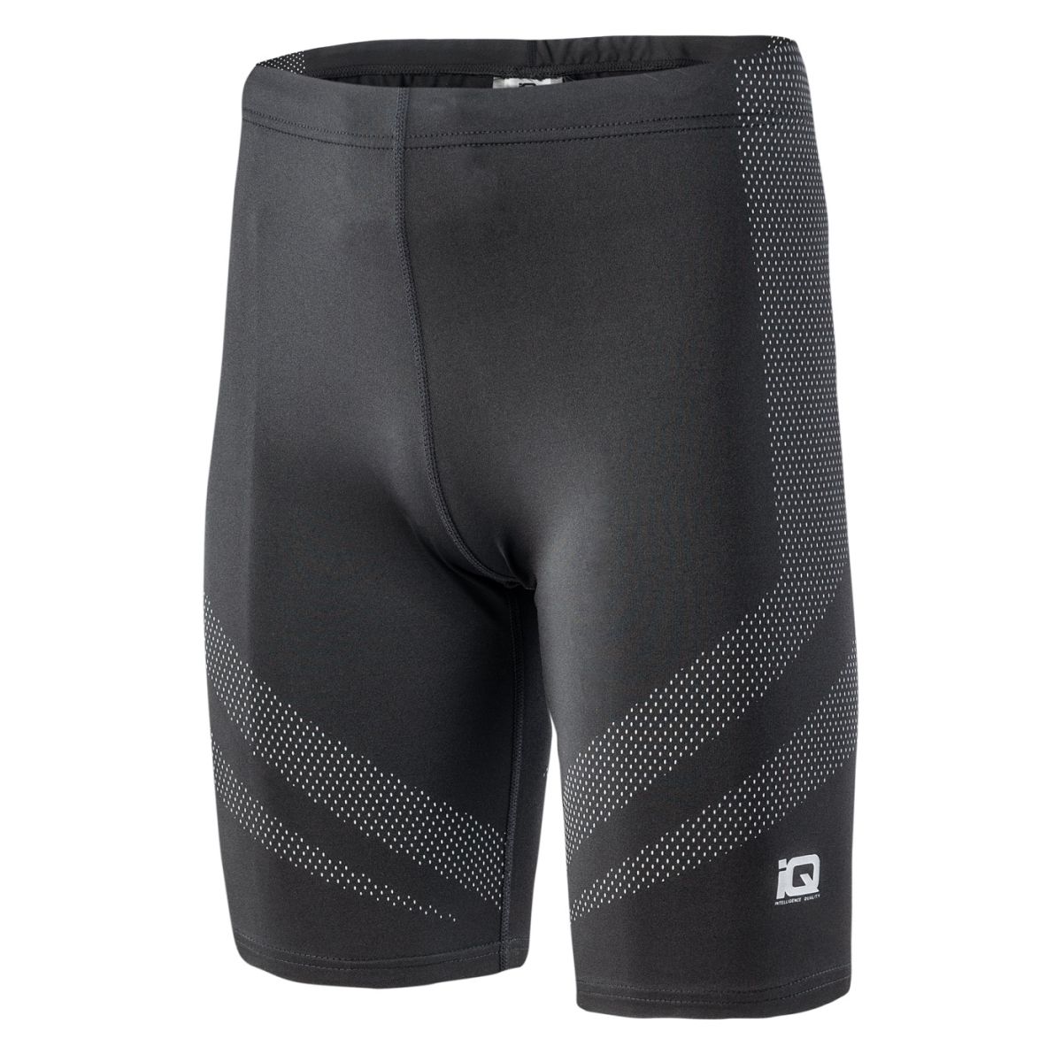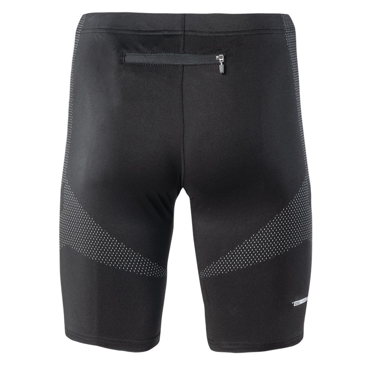 The IQ ARIZO ½ men's leggings, made from synthetic materials, effectively wick moisture away from the skin. These shorts feature a back zippered pocket for storing small items. An elastic waistband with a drawstring allows for a personalized fit. Flatlock seam technology prevents irritation. Reflective details on the legs enhance visibility after dark.