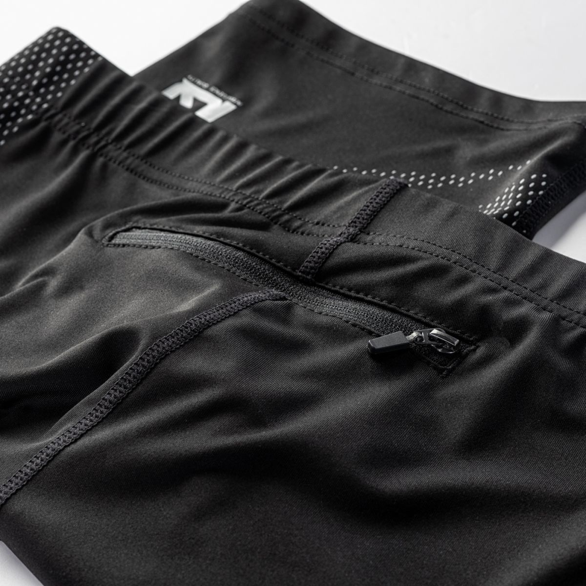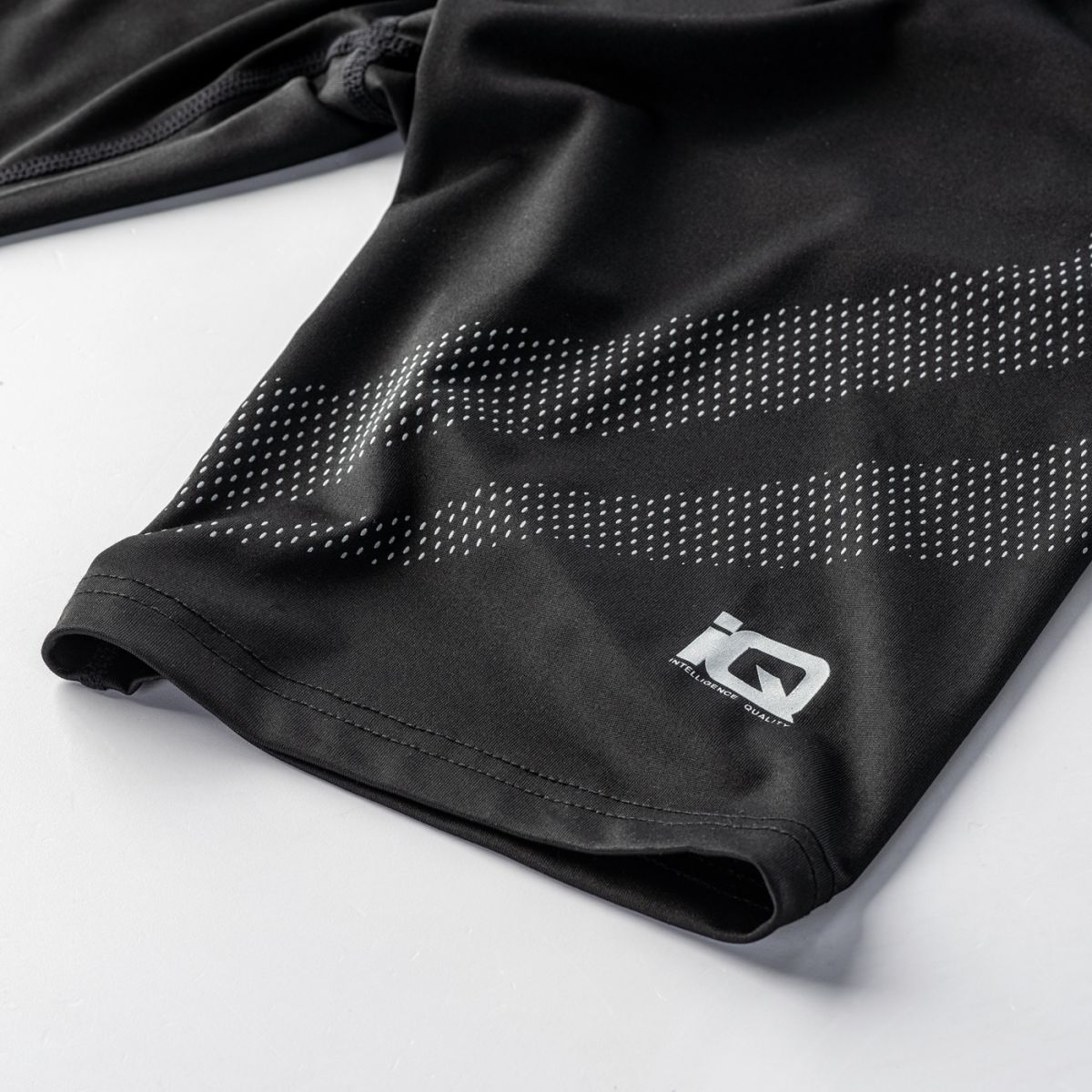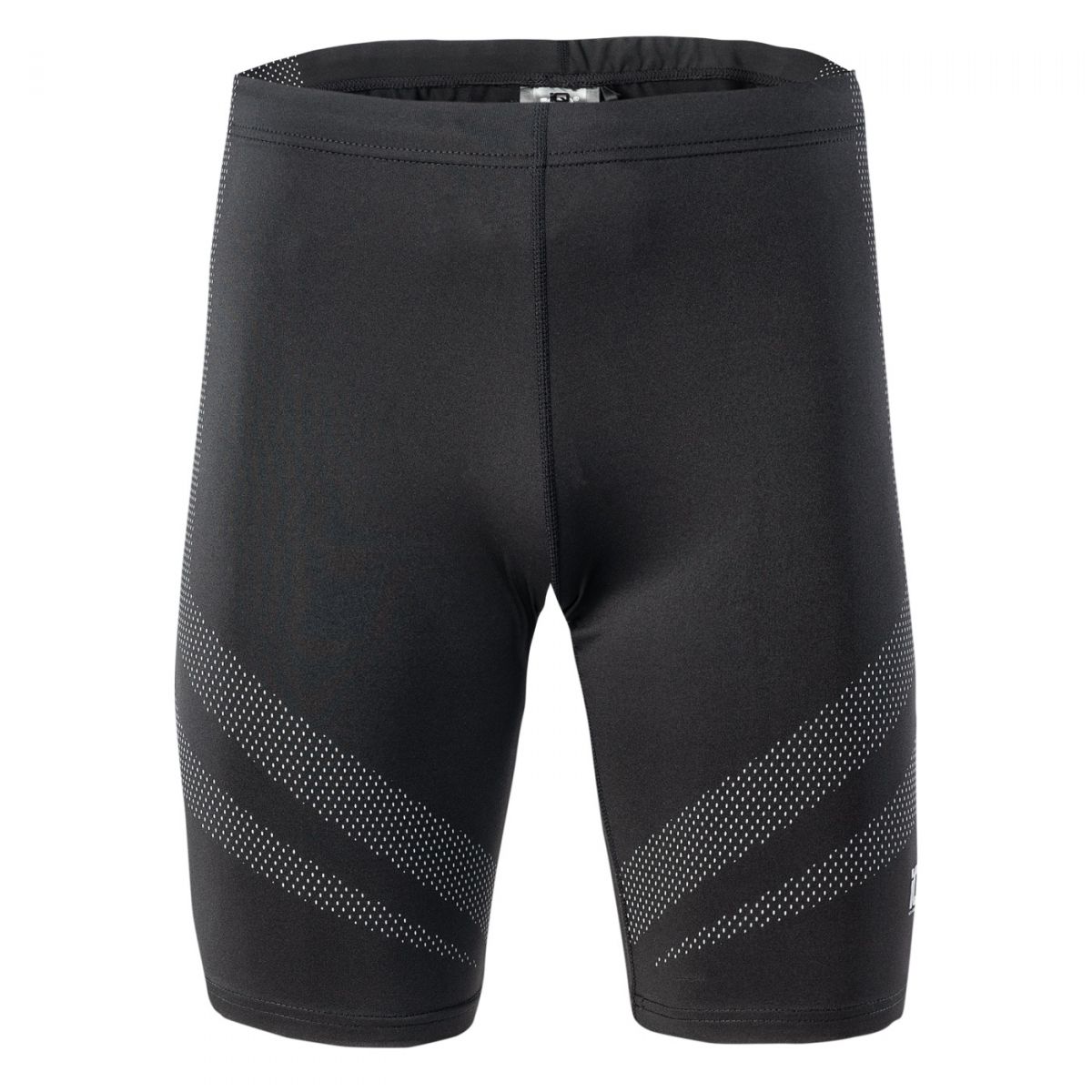 The IQ ARIZO ½ men's leggings, made from synthetic materials, effectively wick moisture away from the skin. These shorts feature a back zippered pocket for storing small items. An elastic waistband with a drawstring allows for a personalized fit. Flatlock seam technology prevents irritation. Reflective details on the legs enhance visibility after dark.