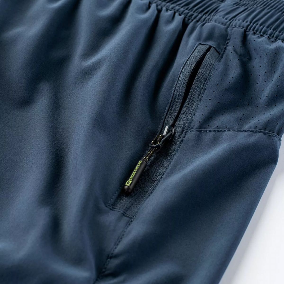 The ONRE men's training shorts by IQ are perfect for a variety of physical activities. The polyester material wicks moisture away effectively and dries faster. The loose fit allows for unrestricted movement and prevents chafing. A wide elastic waistband with a drawstring allows for an optimal fit. Two side pockets are perfect for storing a phone or keys, and a zipper closure prevents them from getting lost. An additional advantage is the perforated insert at the back, which helps wick moisture away.