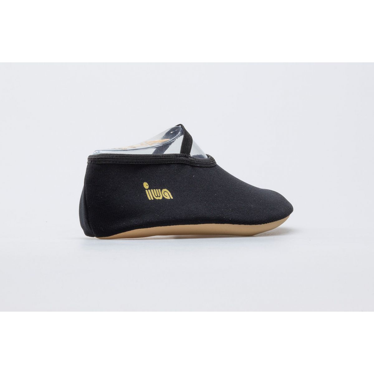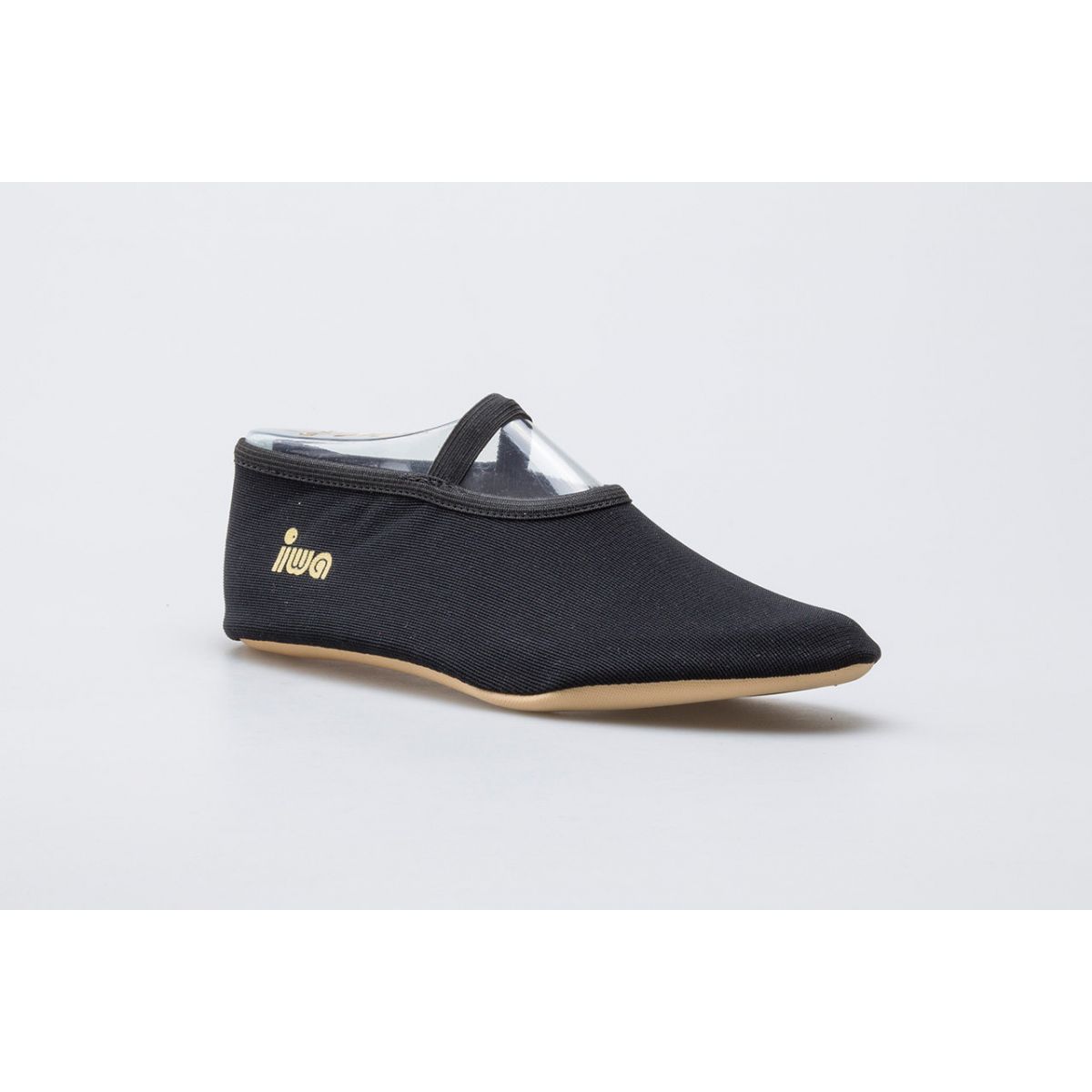 The black IWA 250 gymnastic ballet slippers are a new colorway of the iconic trampoline shoe. The long-awaited black color has finally arrived in our offer. Ballet slippers are a staple for acrobatic gymnasts. They were created with trampoline jumpers in mind. Thanks to the lightweight and durable material, these gymnastic ballet slippers are virtually unnoticeable during acrobatics. Cotton with added Lycra allows for a precise fit. The elastic on the upper prevents slippage during exercise. The IWA 250 slippers are also perfect as dance slippers or ballet slippers. Black gymnastic ballet slippers pair perfectly with dark gymnastics outfits, which you can also find in our offer. Join the group of satisfied users of IWA Gymnastics ballet shoes, which are used by the best gymnasts and dancers around the world.