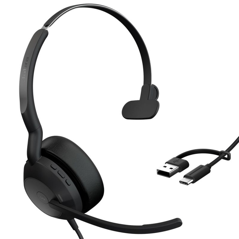 Jabra Evolve2 50 Headset Wired Headband Office/Call Center USB Type-C / USB Type-A Bluetooth Black