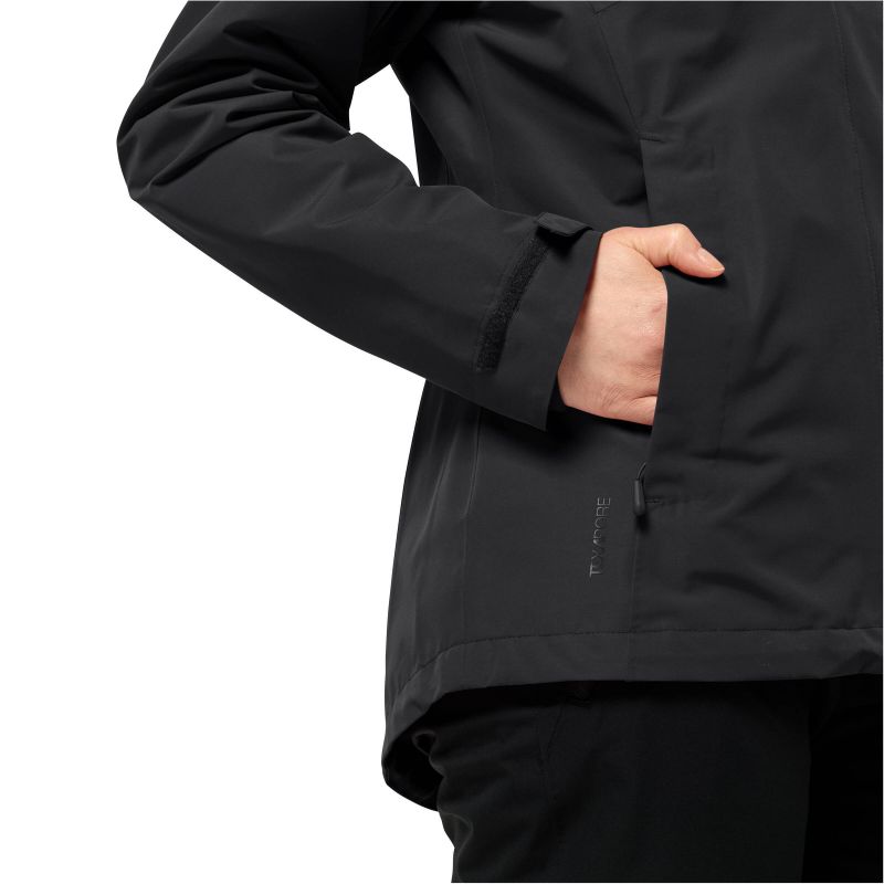 Women's insulated jacket provides reliable protection against cold, wind and rain.