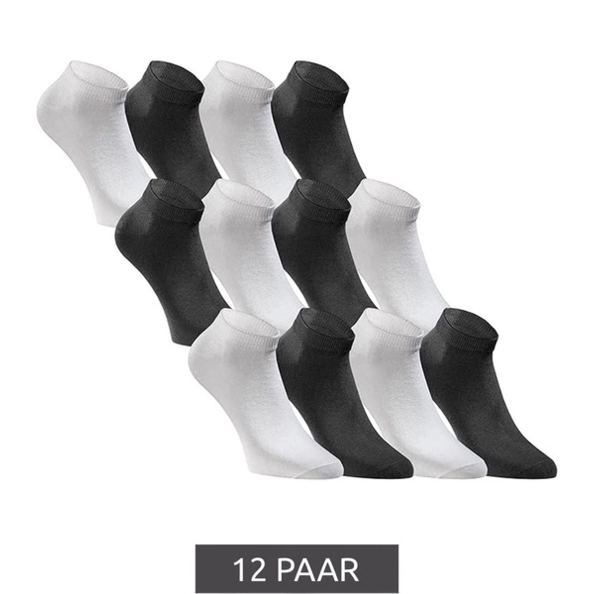 - The set includes 6 pairs of black socks and 6 pairs of white socks.
