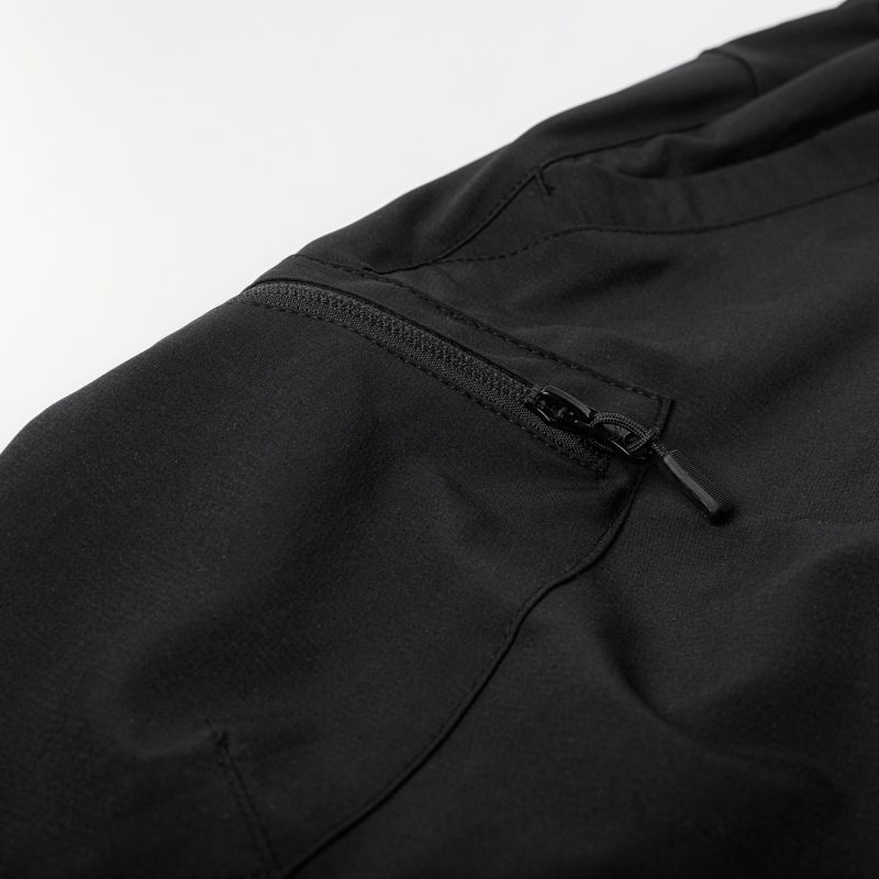 96% Polyester, 4% Elastane Side pockets Reflective elements Quick-drying