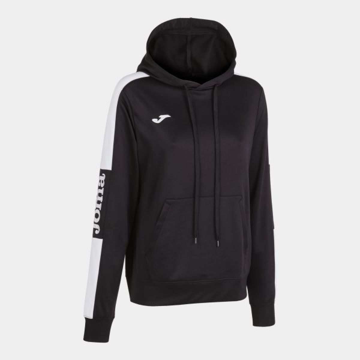 This sweatshirt features a drawstring-adjustable hood and a front kangaroo pocket. Ribbed cuffs and hem. It features a plush inner lining for warmth. It features the J logo and a JOMA screen print.