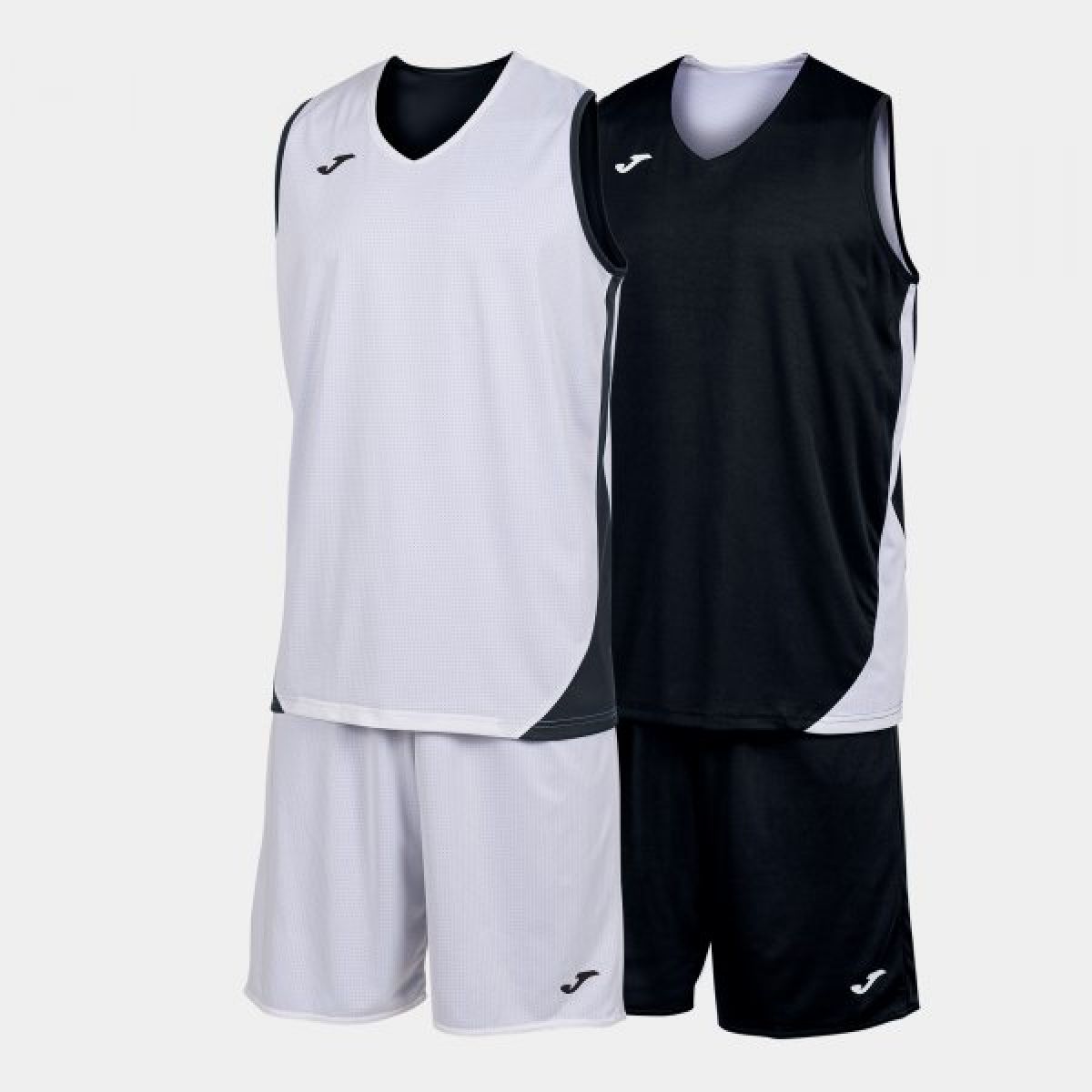 - A set consisting of a T-shirt and reversible shorts, made of extremely light material.