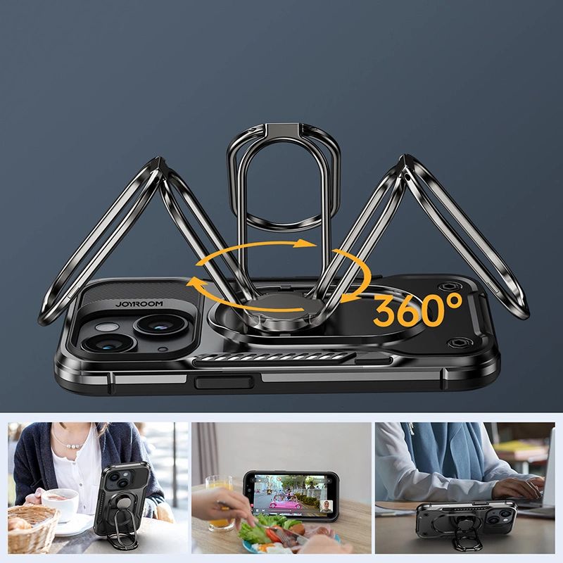 Joyroom Dual Hinge case for iPhone 14 Plus armored case with a stand and a ring holder black