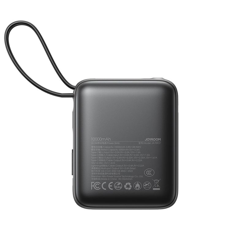 Joyroom JR-PBF27 10000mAh 22.5W Power Bank with Built-in USB-C and Lightning Cables – Black