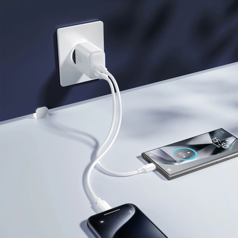 Joyroom JR-TCF21 allows you to charge two devices at the same time, which is extremely practical in everyday use. Thanks to the USB-C and USB-A ports, you can connect two devices to it at the same time, which eliminates the need to have several chargers. This is an ideal solution for families, couples or people with more than one mobile device.