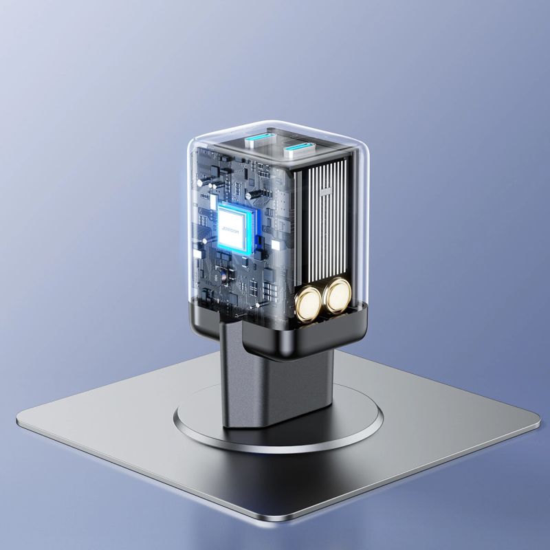 The Joyroom JR-TCG17 wall charger is a modern device that combines high power, GaN technology, and a compact size. With 45W of power, it allows for fast charging of laptops, smartphones, and tablets, while the simultaneous use of two USB-C ports allows for charging two devices at once. Advanced GaN technology reduces heat generation and ensures stable operation, improving user safety. The charger supports Samsung and iPhone fast charging standards, reducing the time needed to recharge. Its small size allows it to fit in a pocket, bag, or backpack, making it ideal for work and travel.