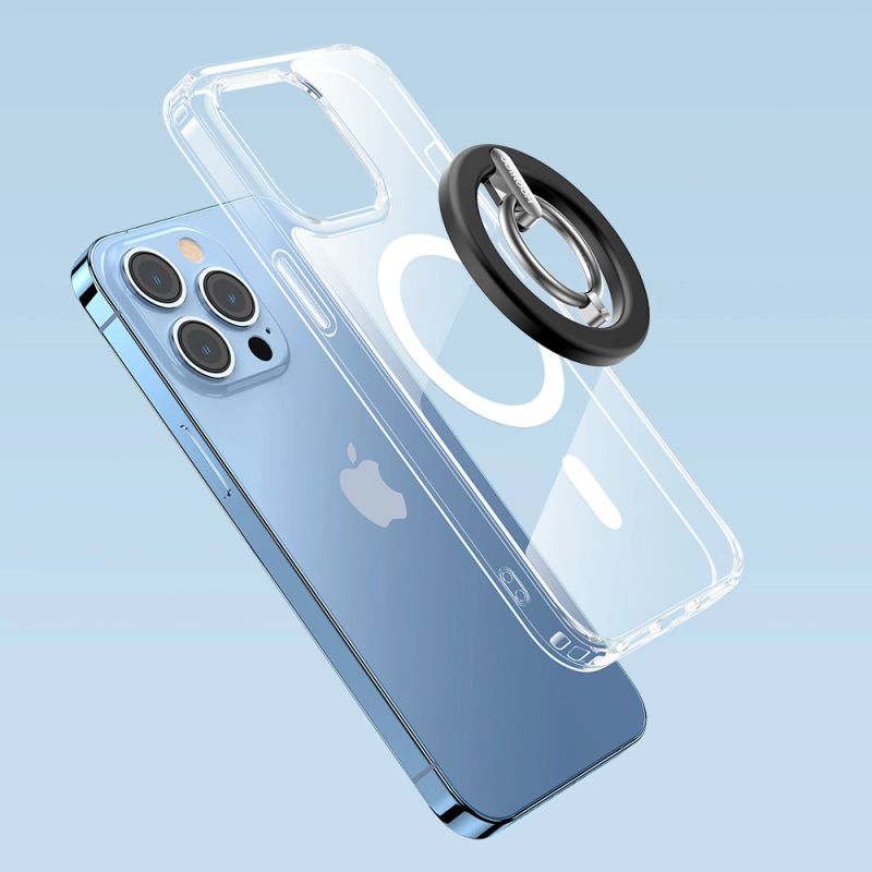 - sticking a metal overlay on the case without the MagSafe function, then attaching the ring to the case with the overlay glued on