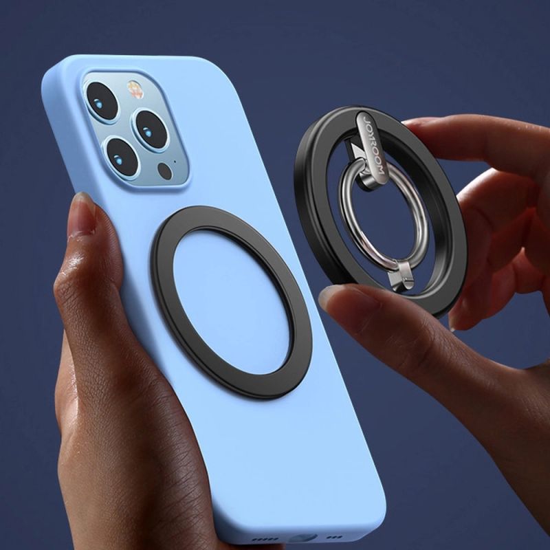 The universal 2-in-1 magnetic holder from the renowned Joyroom brand will be useful for every smartphone user. Light and compact, it allows you to use the device comfortably in all conditions - at work, at home and in the car. We can use it as a stand or a car holder. Thanks to the built-in magnets, you are able to use the phone horizontally and vertically. All you need to do is turn the ring 90 degrees. Joyroom designed the set for a lifting capacity of up to 1200g, which ensures safe use in the toughest conditions. It is compatible with all iPhone models from the 12th generation and above that have the MagSafe function. In addition, if your phone does not have MagSafe you can use the metal cover and use it in conjunction with the magnetic ring.