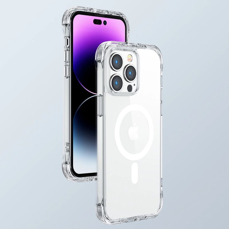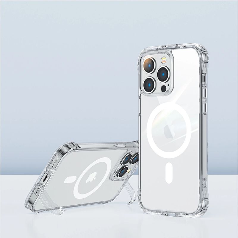 Joyroom Magnetic Defender Magnetic Case for iPhone 14 Plus Armored Case with Hooks Stand Clear (MagSafe Compatible)